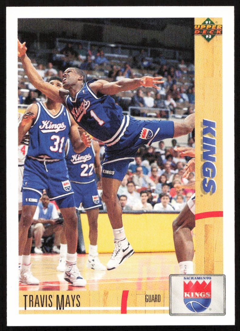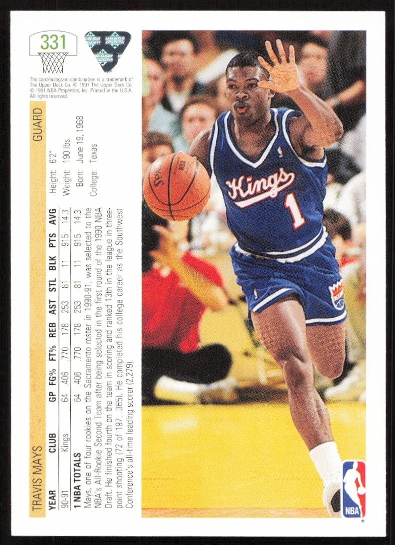 This Basketball card, from 1991-92 is part of the Upper Deck card set. Travis Mays is featured and has a card number of 331.