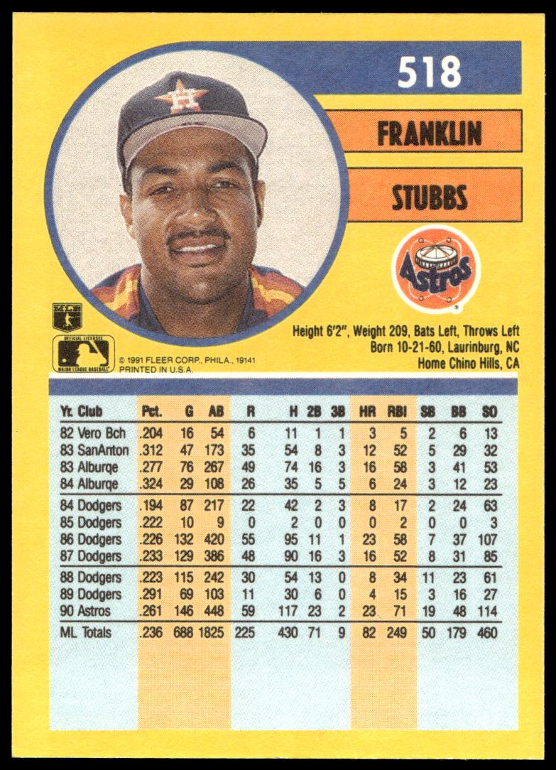 This Baseball card, from 1991 is part of the Fleer  card set. Franklin Stubbs is featured and has a card number of 518.