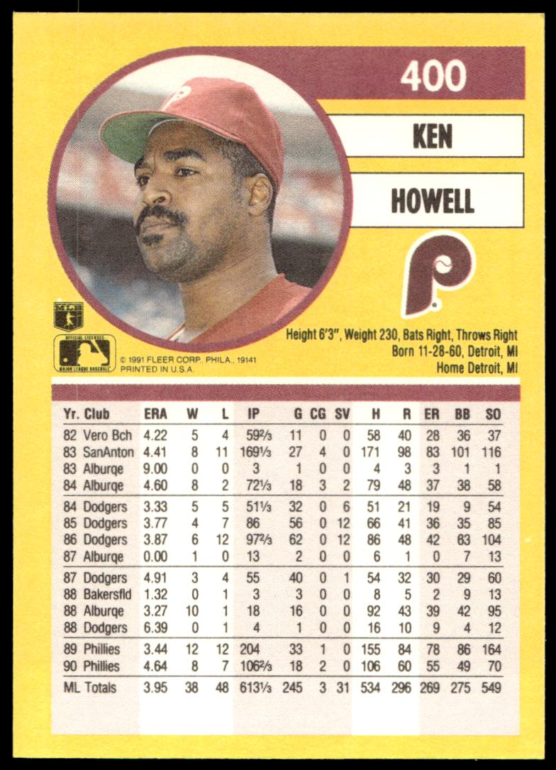 This Baseball card, from 1991 is part of the Fleer  card set. Ken Howell is featured and has a card number of 400.
