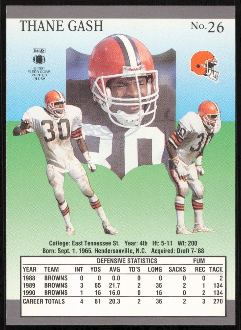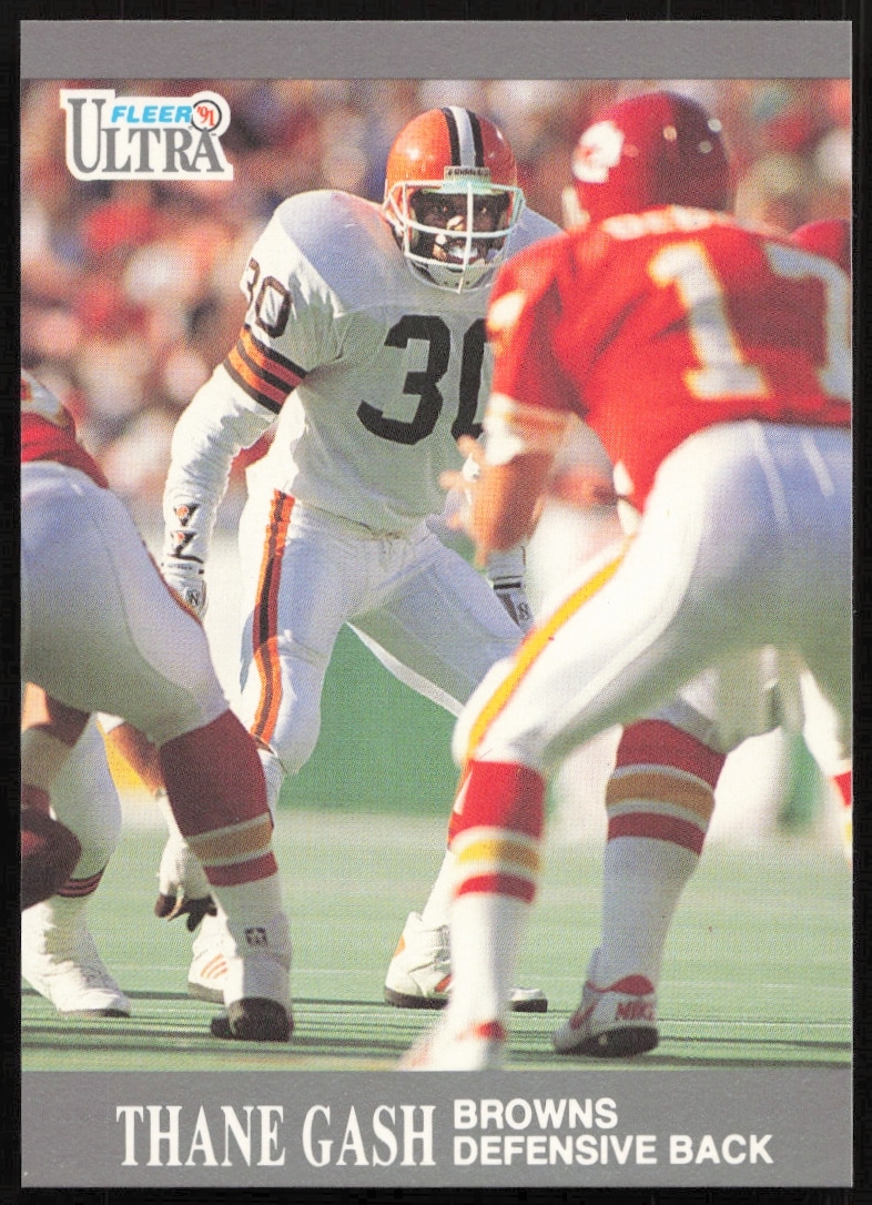 This Football card, from 1991 is part of the Fleer Ultra card set. Thane Gash is featured and has a card number of 26.