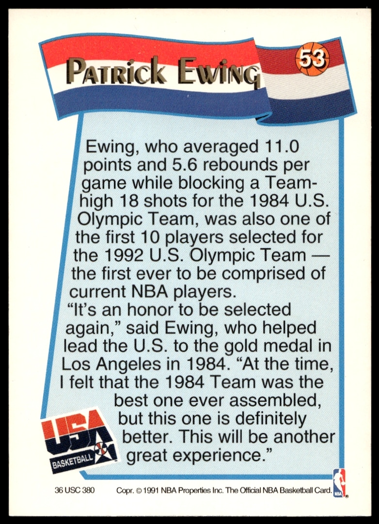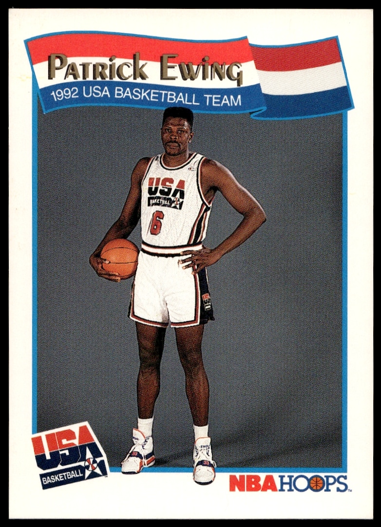 This Basketball card, from 1991 is part of the Hoops card set. Patrick Ewing is featured and has a card number of 53.