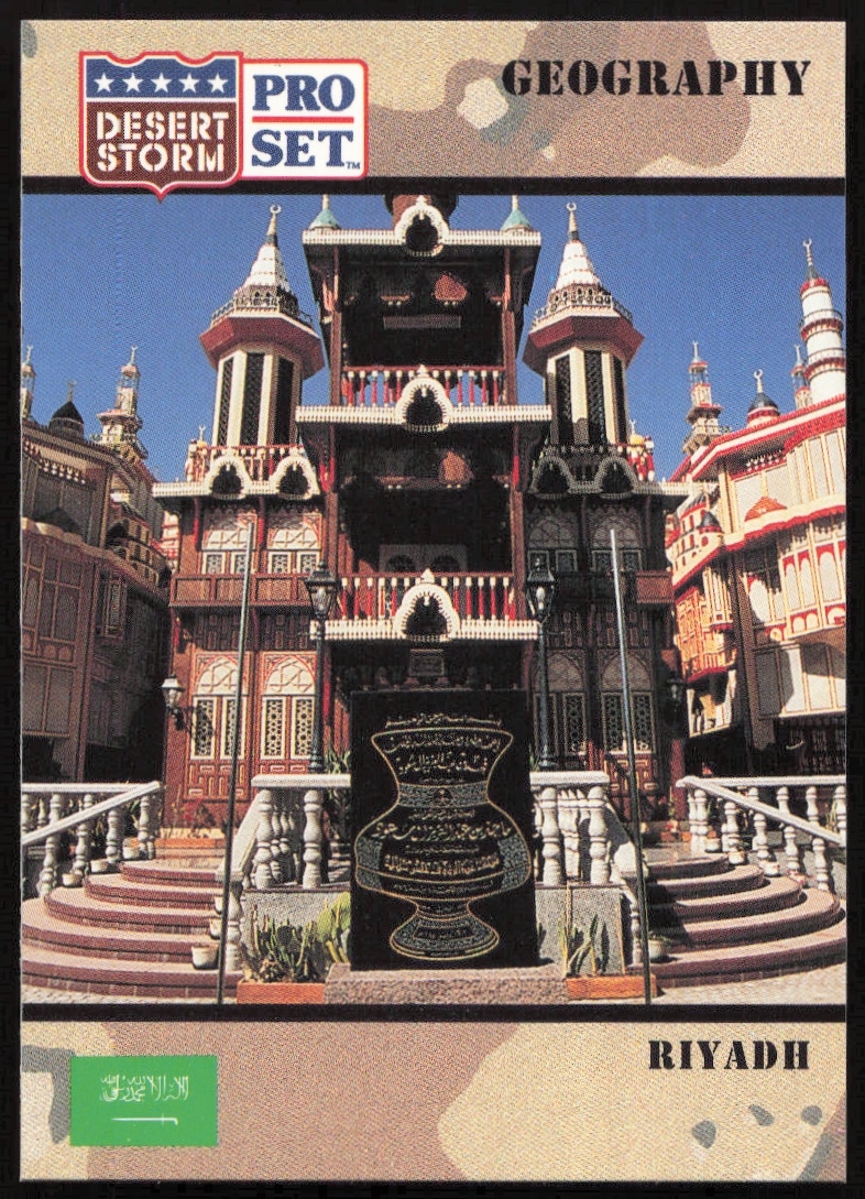 This Military card, from 1991 is part of the Pro Set Desert Storm card set. Riyadh is featured and has a card number of 49.