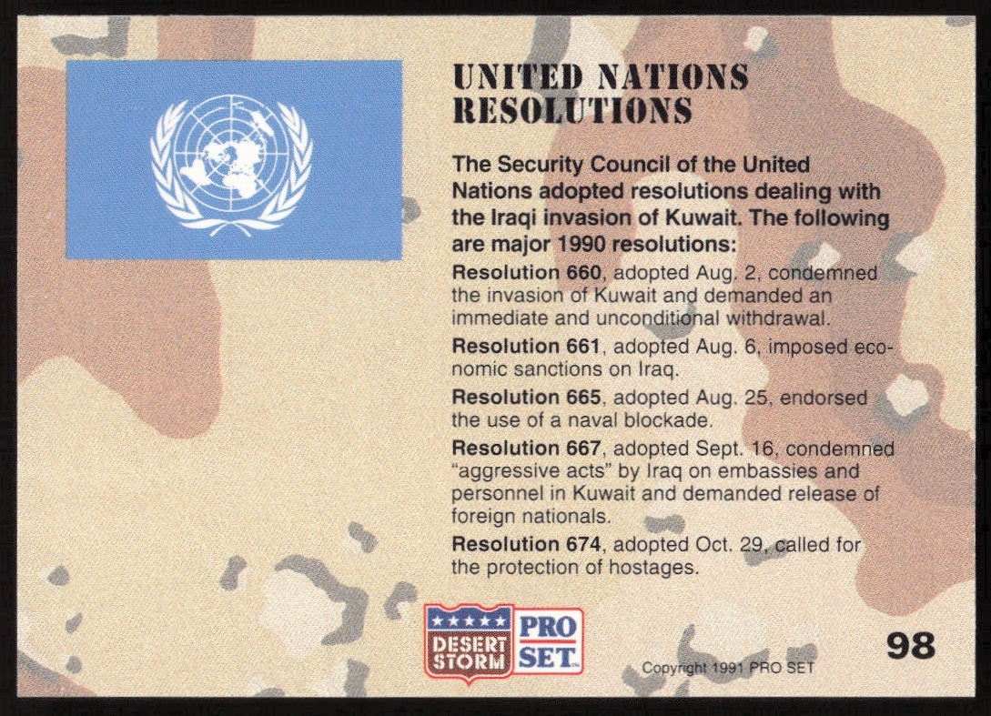 1991 Pro Set Desert Storm United Nations Resolutions #98