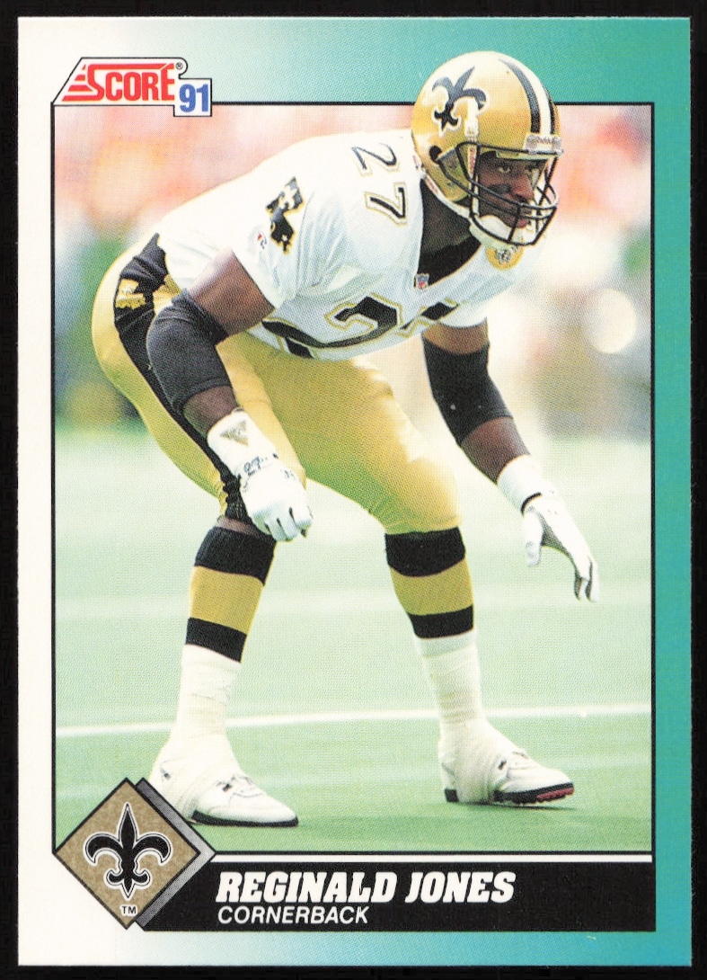 This Football card, from 1991 is part of the Score Supplemental card set. Reginald Jones is featured and has a card number of 62T.