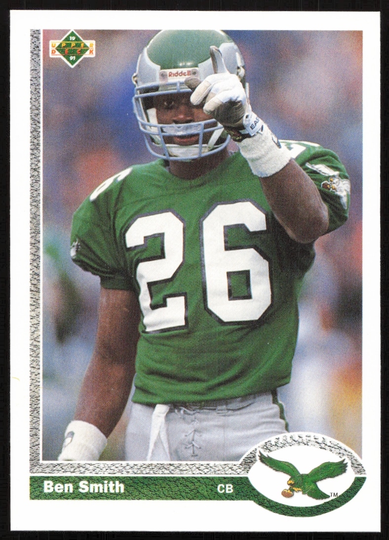 This Football card, from 1991 is part of the Upper Deck card set. Ben Smith is featured and has a card number of 110.