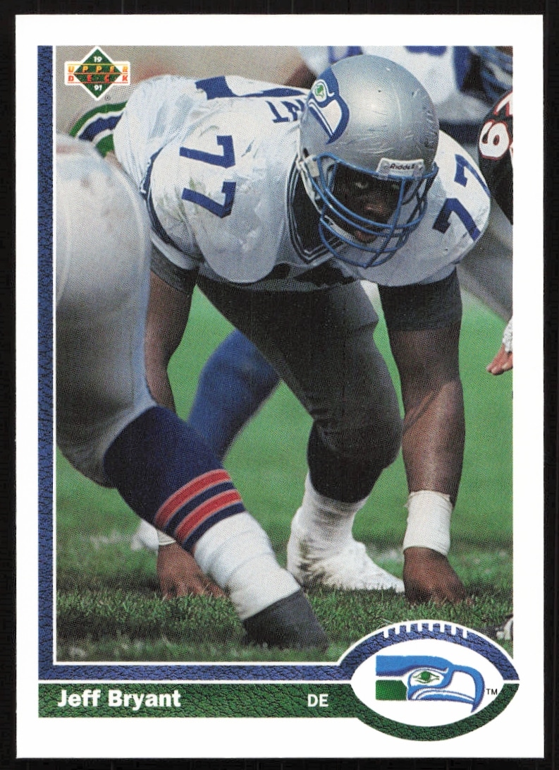 This Football card, from 1991 is part of the Upper Deck card set. Jeff Bryant is featured and has a card number of 338.