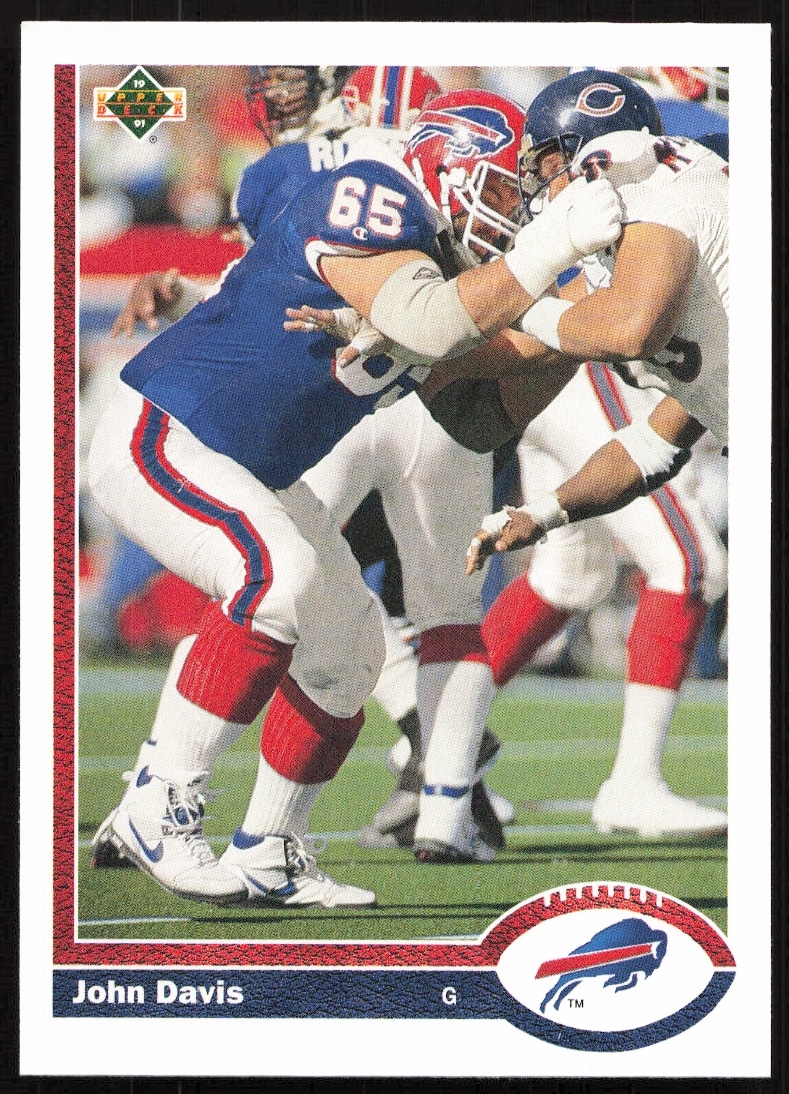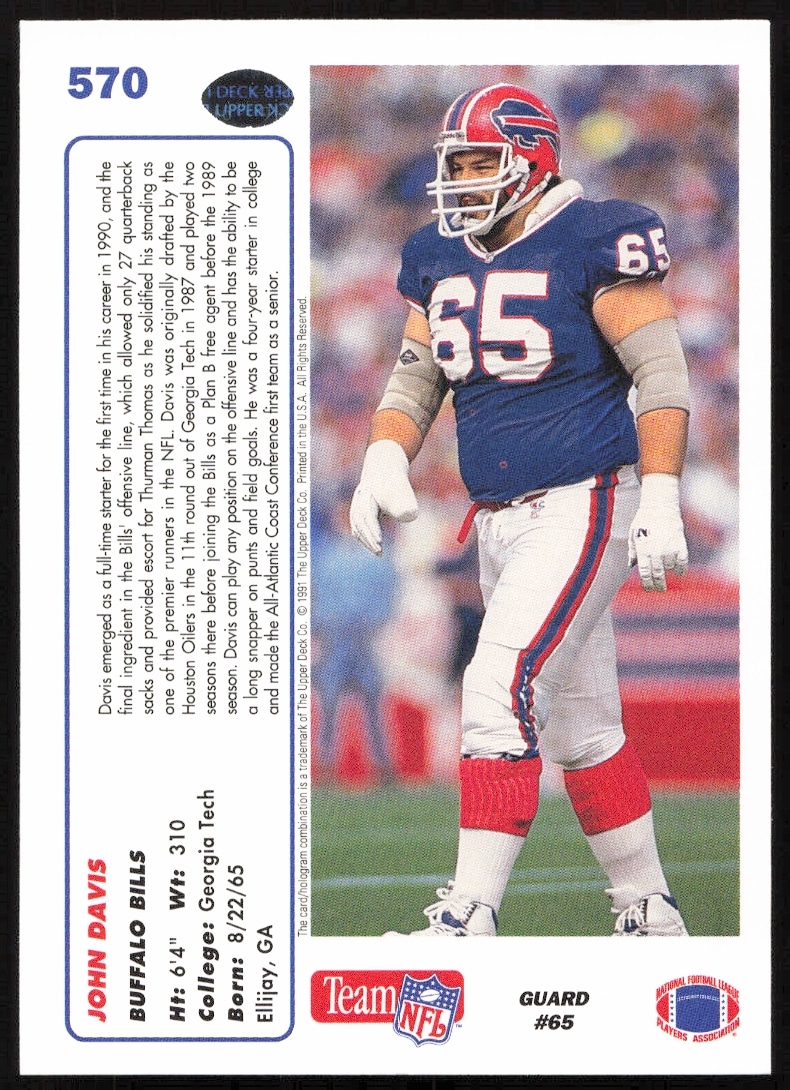 This Football card, from 1991 is part of the Upper Deck card set. John Davis is featured and has a card number of 570.
