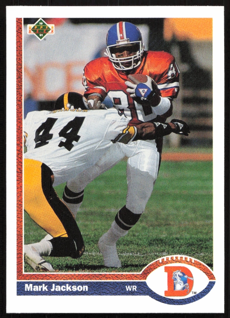 This Football card, from 1991 is part of the Upper Deck card set. Mark Jackson is featured and has a card number of 382.