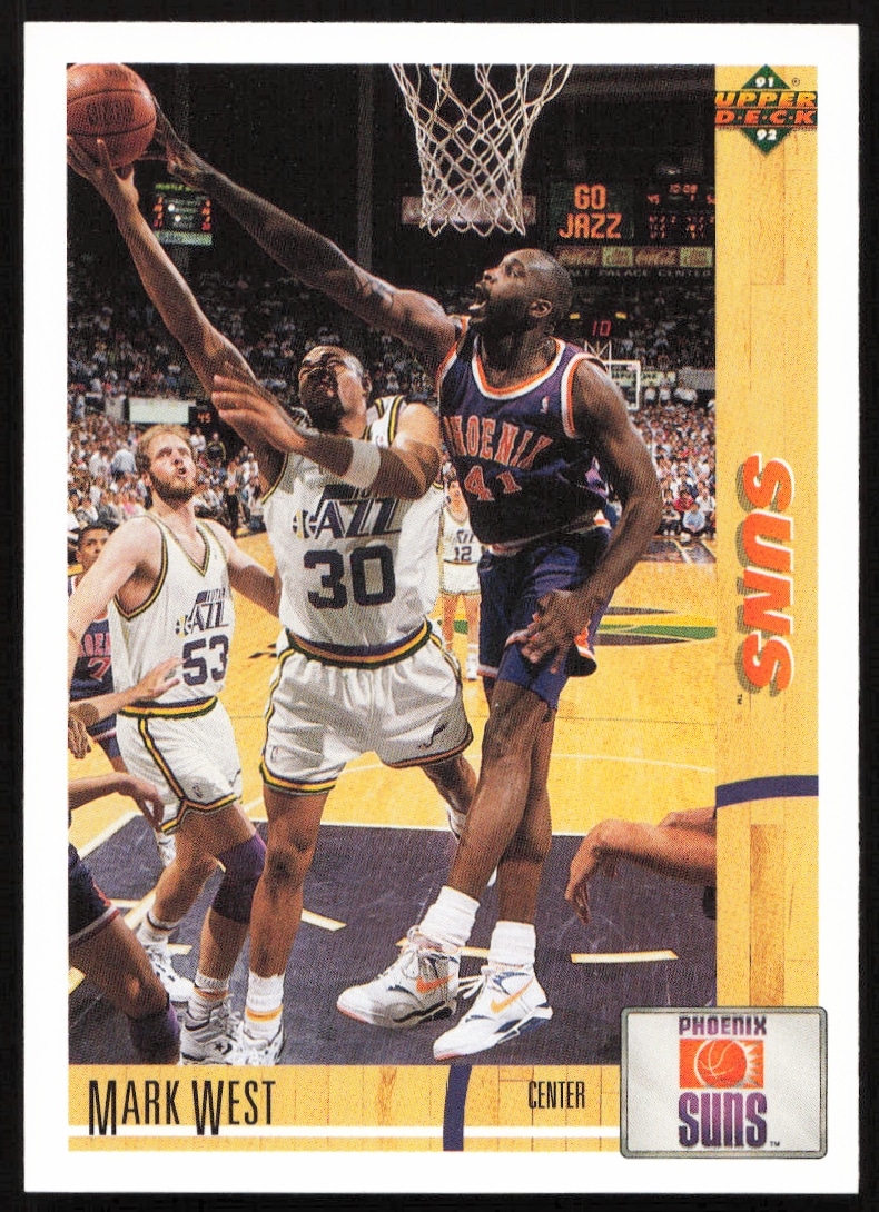 This Basketball card, from 1991-92 is part of the Upper Deck card set. Mark West is featured and has a card number of 115.
