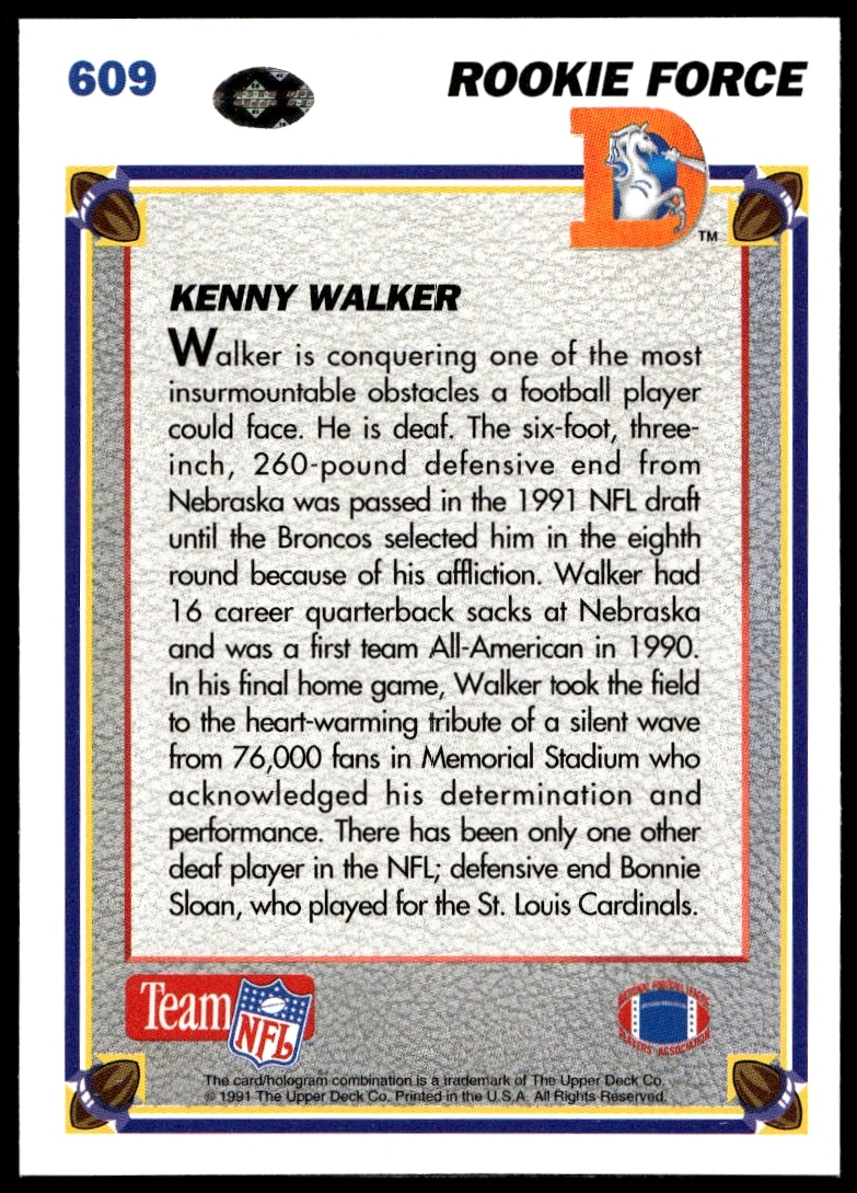 This Football card, from 1991 is part of the Upper Deck card set. Michael Jackson is featured and has a card number of 610.