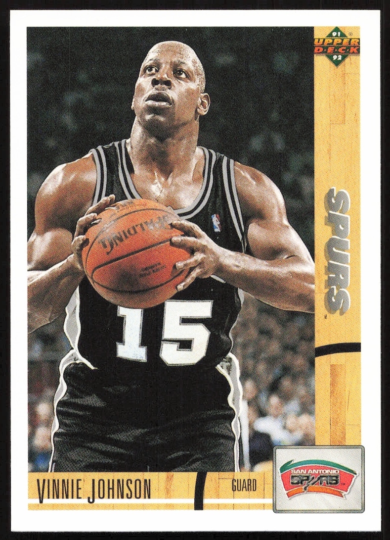 This Basketball card, from 1991-92 is part of the Upper Deck card set. Vinnie Johnson is featured and has a card number of 425.