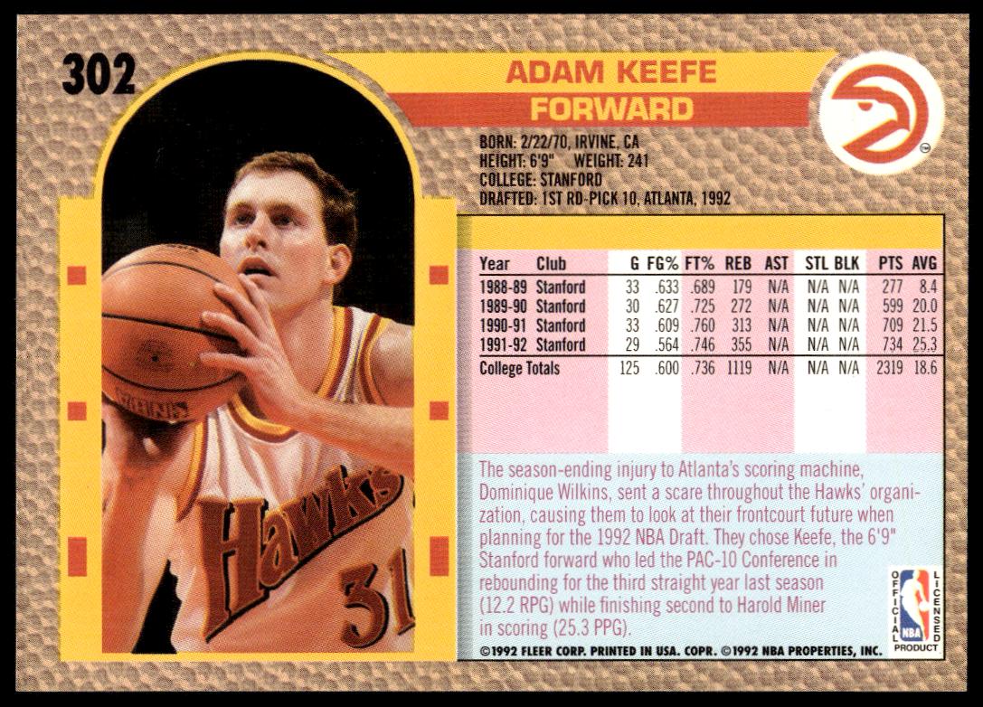 This Basketball card, from 1992-93 is part of the Fleer  card set. Adam Keefe is featured and has a card number of 302.