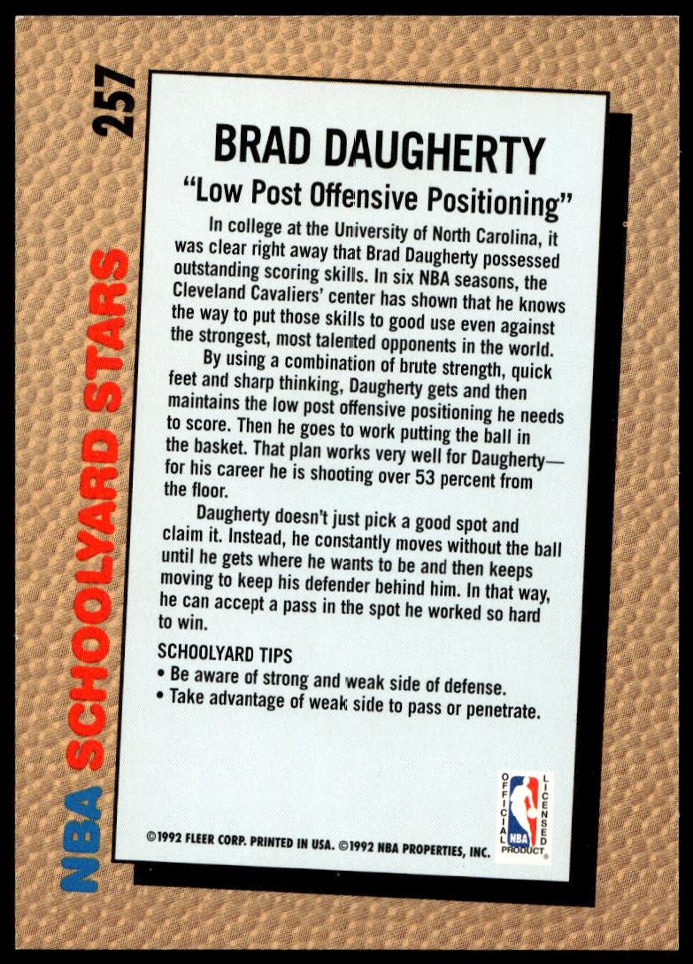 This Basketball card, from 1992-93 is part of the Fleer  card set. Brad Daugherty is featured and has a card number of 257.