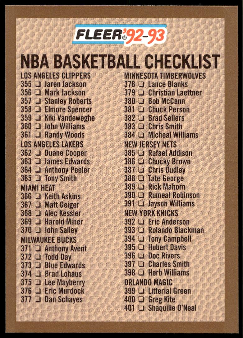 This Basketball card, from 1992-93 is part of the Fleer  card set. Checklist 4 is featured and has a card number of 443.