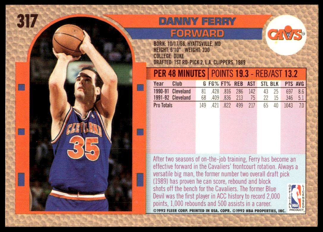 This Basketball card, from 1992-93 is part of the Fleer  card set. Danny Ferry is featured and has a card number of 317.