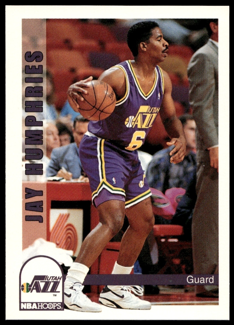 This Basketball card, from 1992-93 is part of the NBA Hoops card set. Jay Humphries is featured and has a card number of 474.