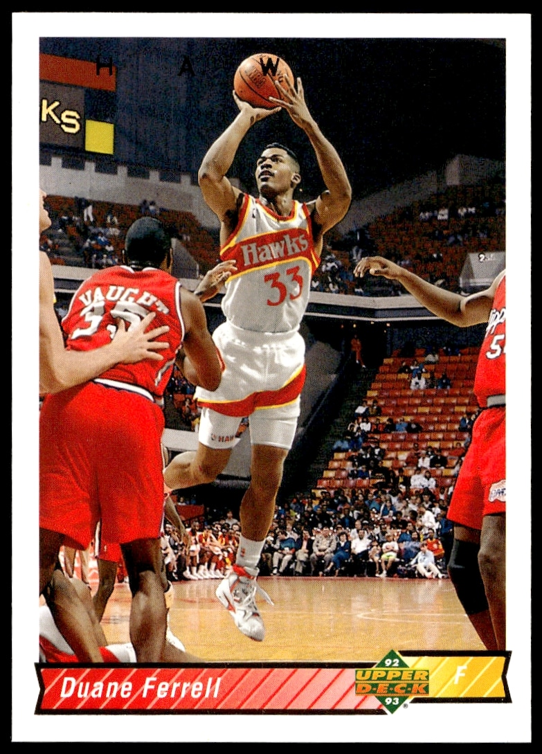 This BasketballΒ card, from 1992-93 is part of the Upper Deck Β card set. Duane Ferrell is featured and has a card number of 166.