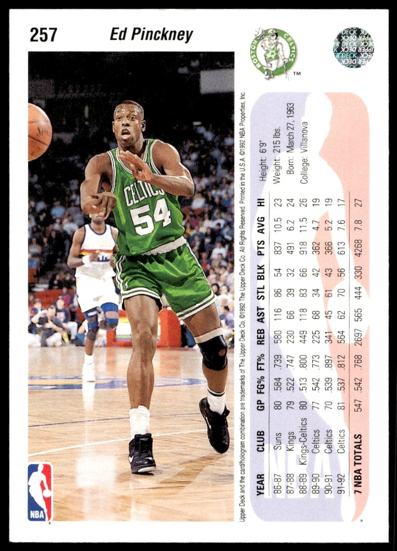 This Basketball card, from 1992-93 is part of the Upper Deck  card set. Ed Pinckney is featured and has a card number of 257.