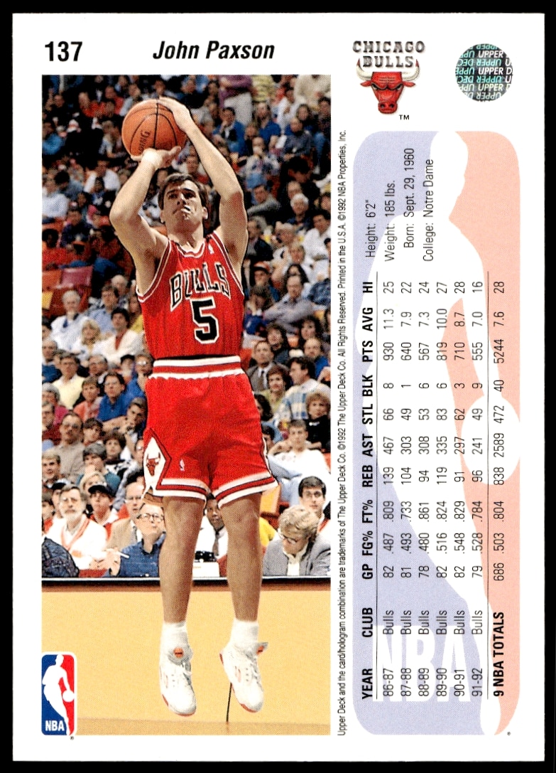 1992-93 Upper Deck John Paxson #137