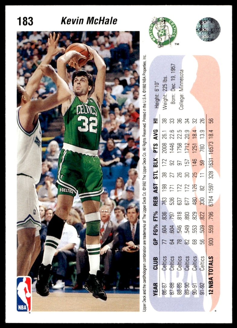 This Basketball card, from 1992-93 is part of the Upper Deck  card set. Kevin McHale is featured and has a card number of 183.
