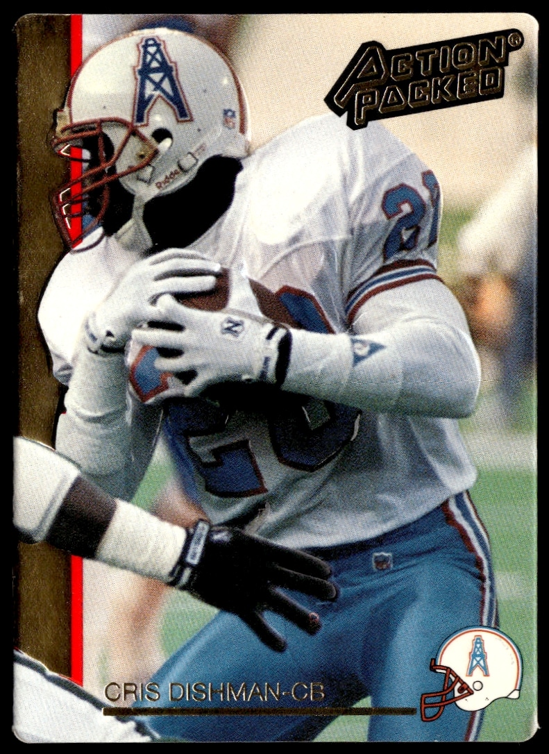 This Football card, from 1992 is part of the Action Packed card set. Cris Dishman is featured and has a card number of 97.