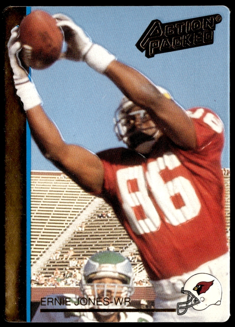 This Football card, from 1992 is part of the Action Packed card set. Ernie Jones is featured and has a card number of 213.