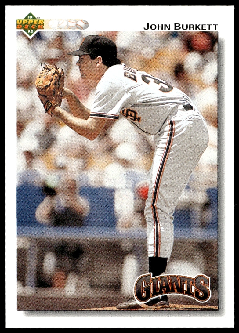 This Baseball card, from 1992 is part of the Upper Deck card set. John Burkett is featured and has a card number of 148.