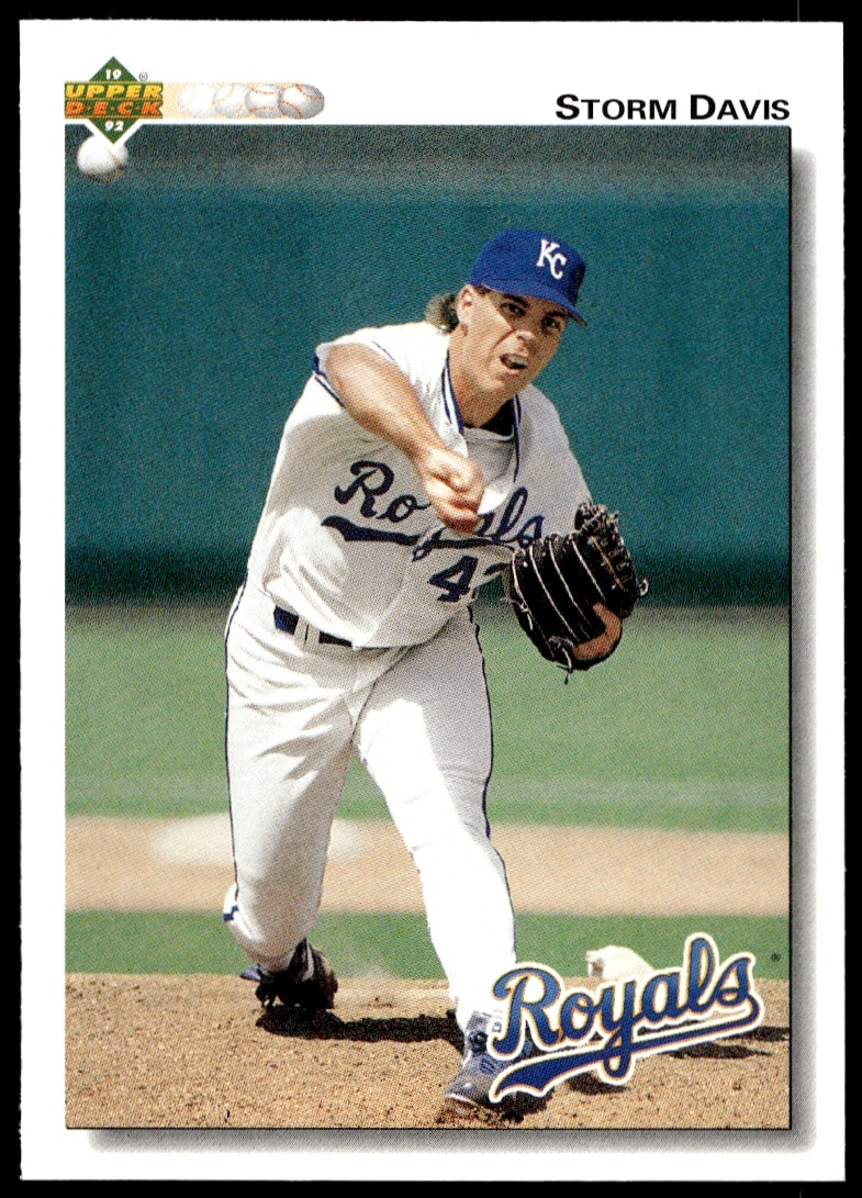 This Baseball card, from 1992 is part of the Upper Deck card set. Storm Davis is featured and has a card number of 499.