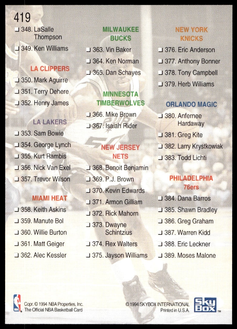 This Basketball card, from 1993-94 is part of the Hoops card set. David Robinson is featured and has a card number of 419.