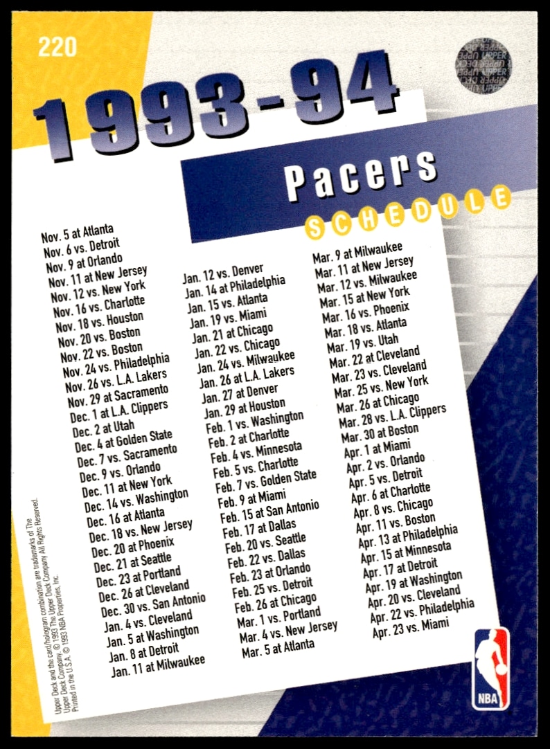 1993-94 Upper Deck Collector’s Choice Indiana Pacers #220