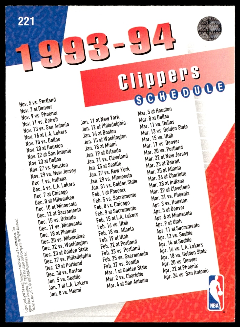 1993-94 Upper Deck Collector’s Choice Los Angeles Clippers #221