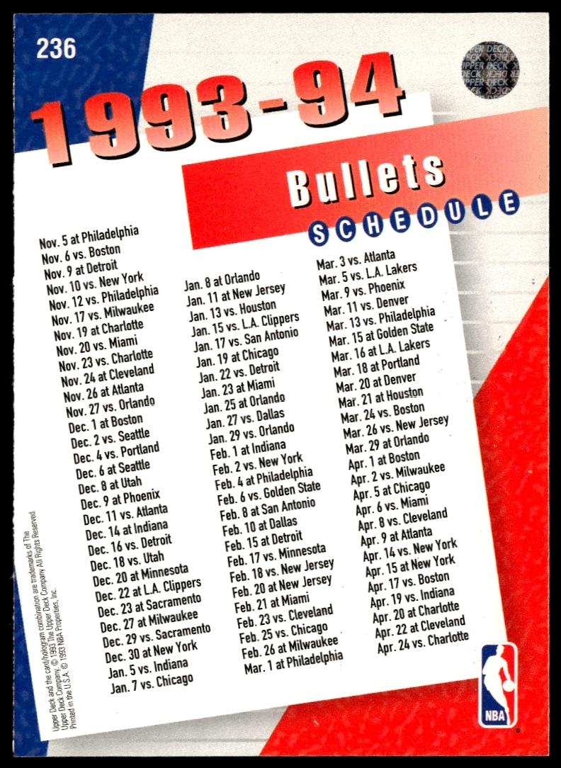 1993-94 Upper Deck Collector’s Choice Washington Bullets #236