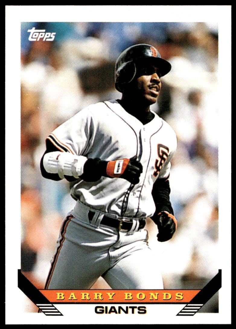 This Baseball card, from 1993 is part of the Topps Traded card set. Barry Bonds is featured and has a card number of 1T.
