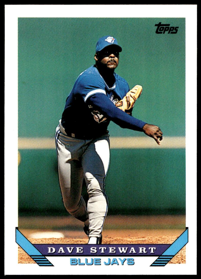 This BaseballΒ card, from 1993 is part of the Topps TradedΒ card set. Dave Stewart is featured and has a card number of 114T.