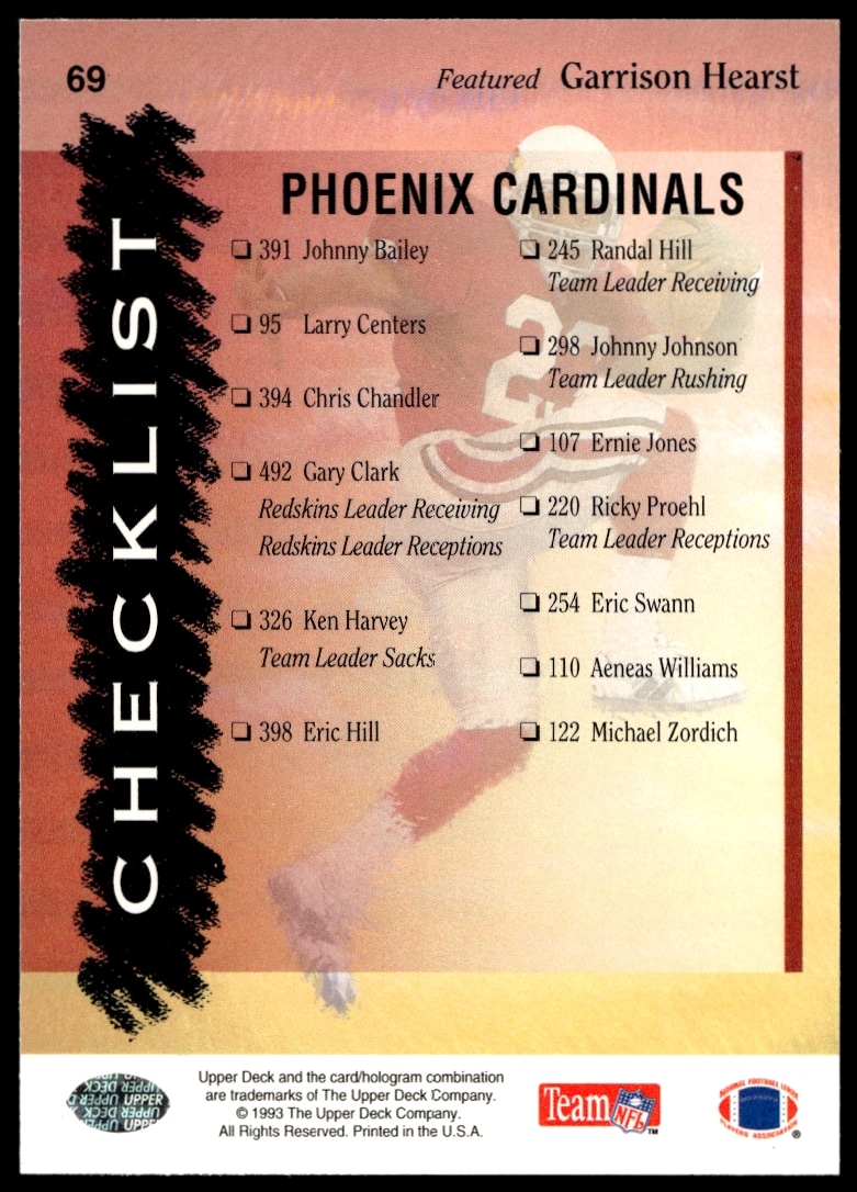1993 Upper Deck Phoenix Cardinals Checklist #69