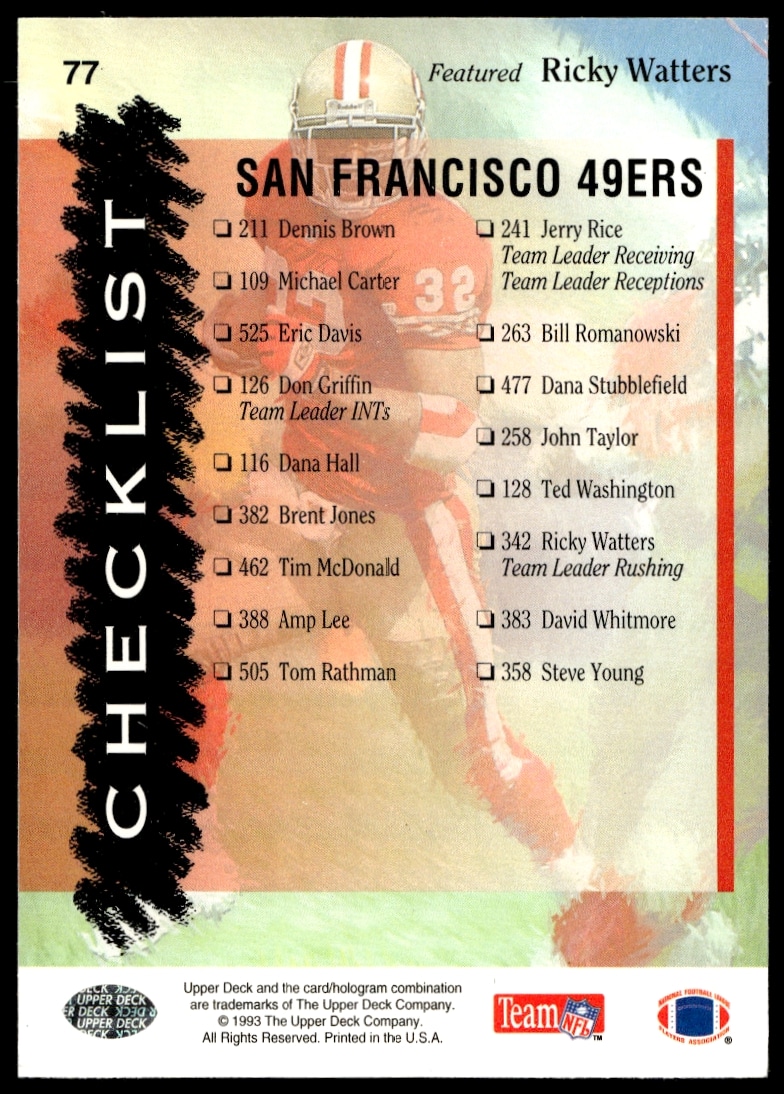 1993 Upper Deck San Francisco 49ers Checklist #77