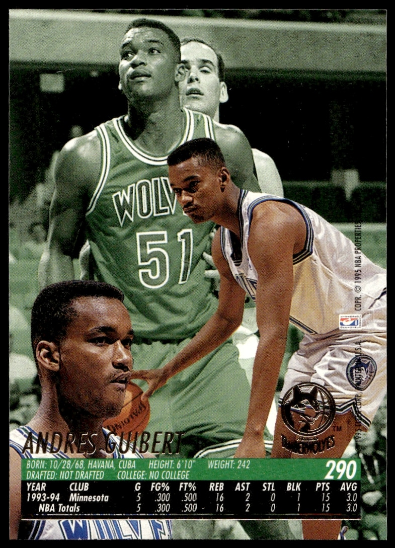 This Basketball card, from 1994-95 is part of the Fleer Ultra card set. Andres Guibert is featured and has a card number of 290.