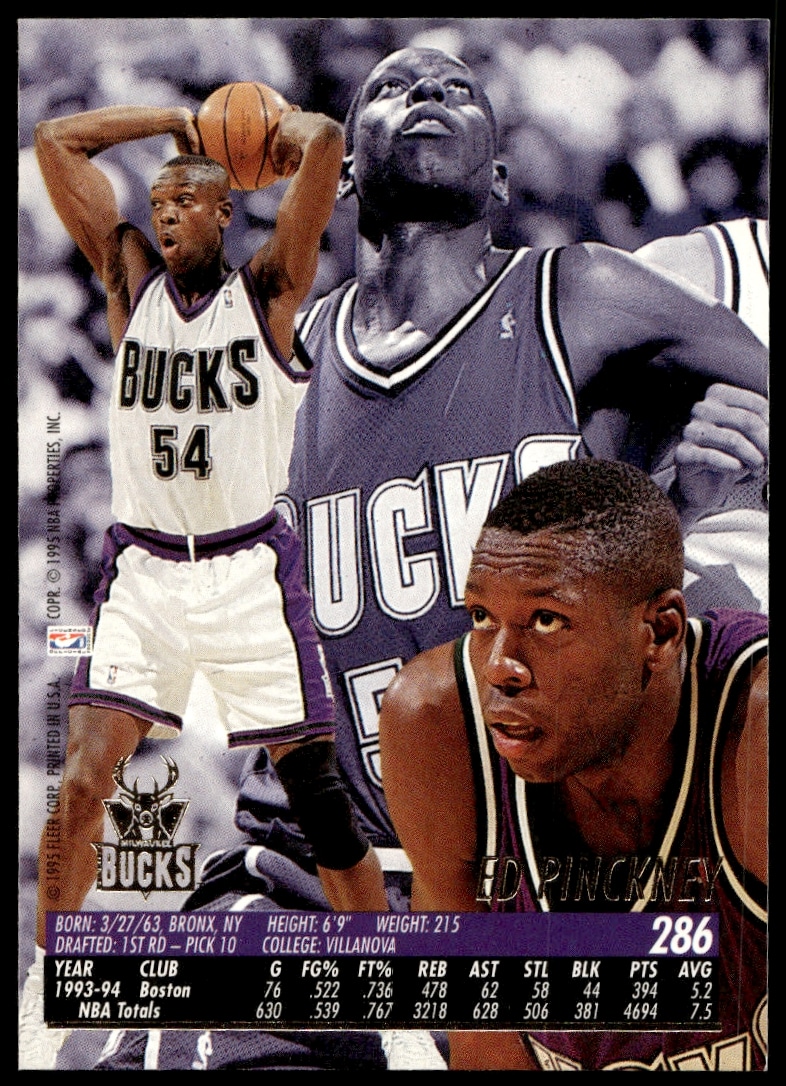 This Basketball card, from 1994-95 is part of the Fleer Ultra card set. Ed Pinckney is featured and has a card number of 286.