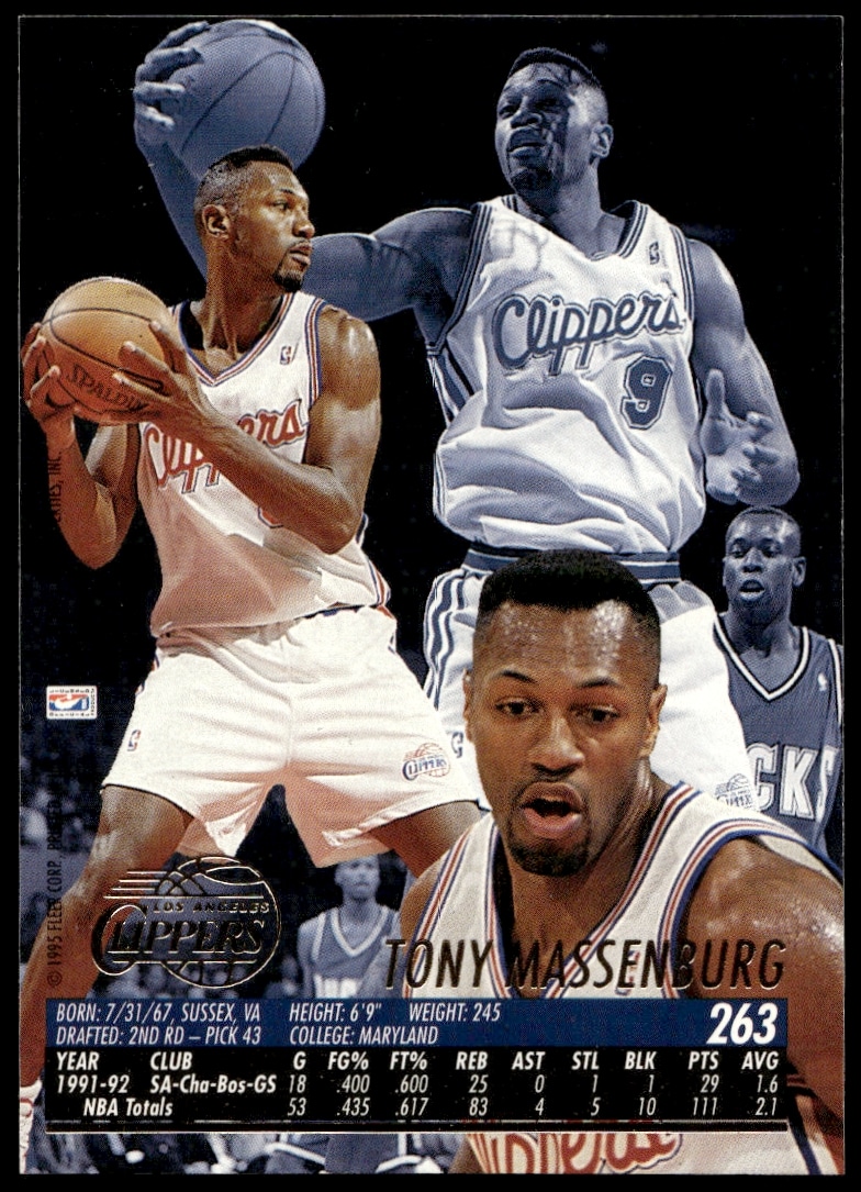 This Basketball card, from 1994-95 is part of the Fleer Ultra card set. Tony Massenburg is featured and has a card number of 263.