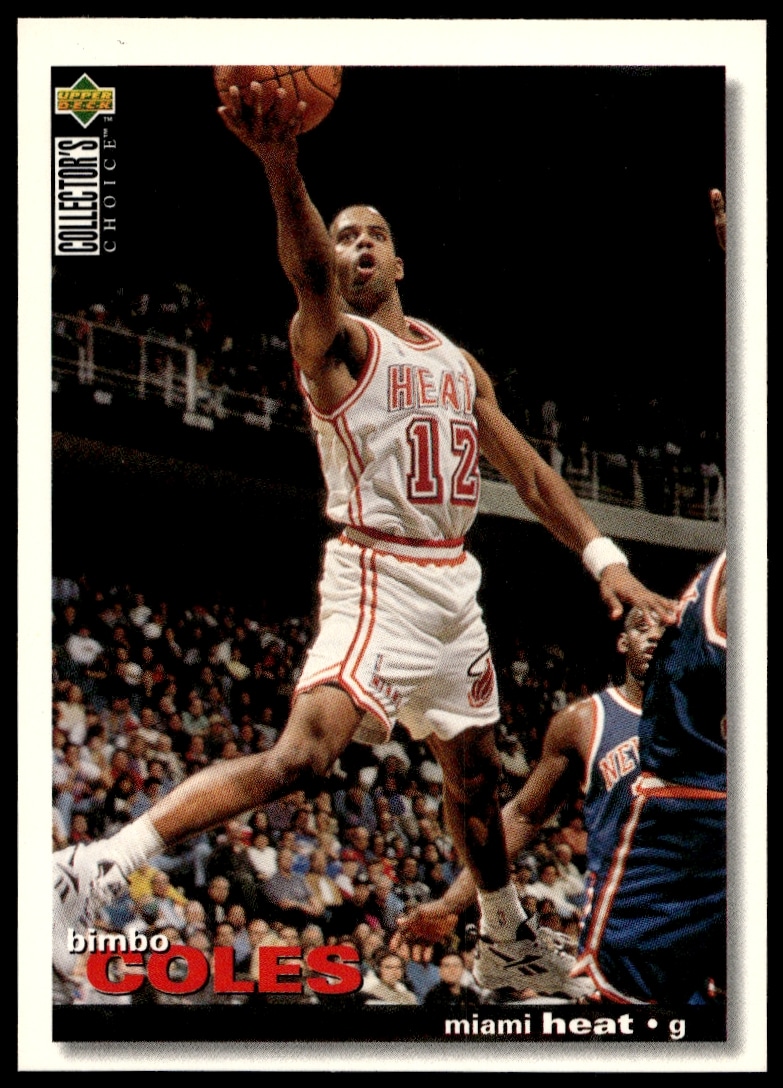 This Basketball card, from 1995-96 is part of the Upper Deck Collector’s Choice card set. Bimbo Coles is featured and has a card number of 49.