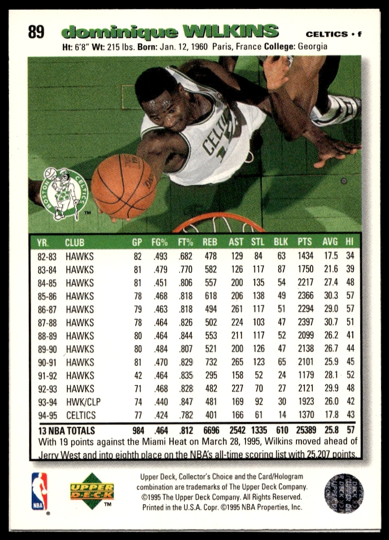 This Basketball card, from 1995-96 is part of the Upper Deck Collector’s Choice card set. Reggie Williams is featured and has a card number of 134.