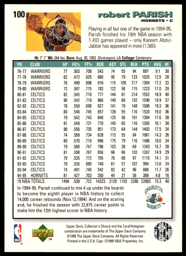 1995-96 Upper Deck Collector’s Choice Robert Parish #100