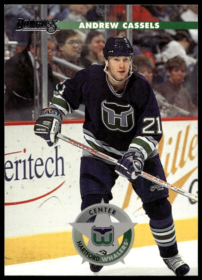 This Hockey card, from 1996-97 is part of the Donruss card set. Andrew Cassels is featured and has a card number of 162.