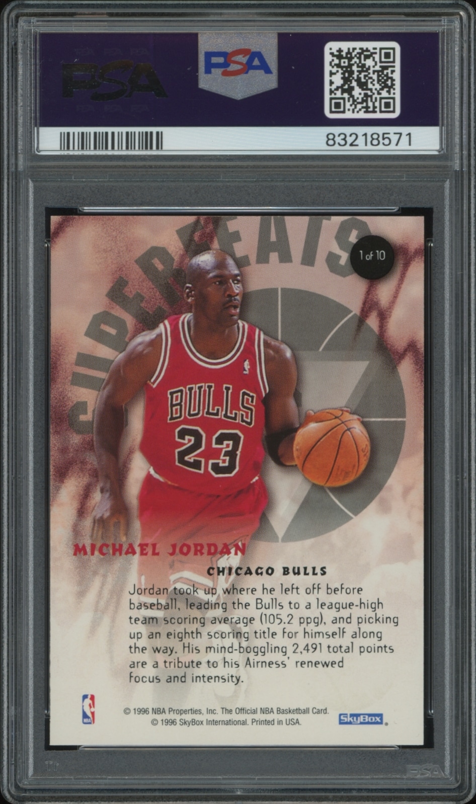 The 1996 Hoops Superfeats Michael Jordan card graded PSA 9 is a classic. Owning this brings back nostalgia and the excitement of MJ’s era. The card quality is superb and it’s a must-have for collectors. A true gem in my collection.