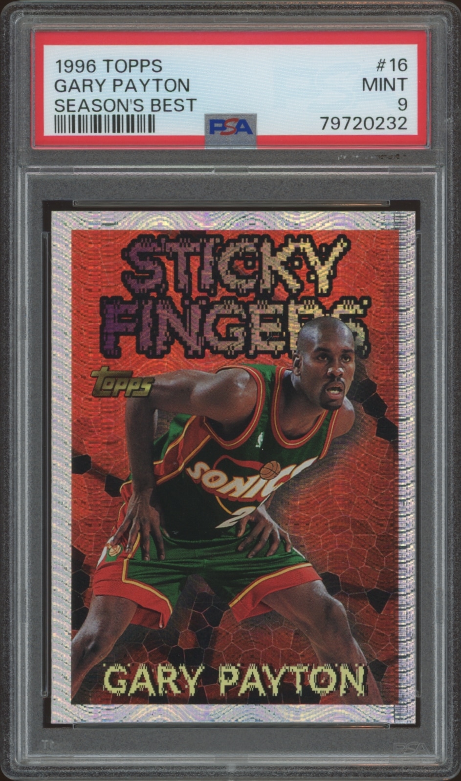 Overall, the 1996-97 Topps Gary Payton Season’s Best #16 (PSA 9) delivers both a beautiful display piece and a meaningful relic from Payton’s prime years. It’s a worthwhile investment for seasoned collectors and newcomers alike who want to own a high-quality piece of basketball history. Definitely a card worth considering if you’re aiming to enhance your collection with authentic, well-preserved vintage cards.