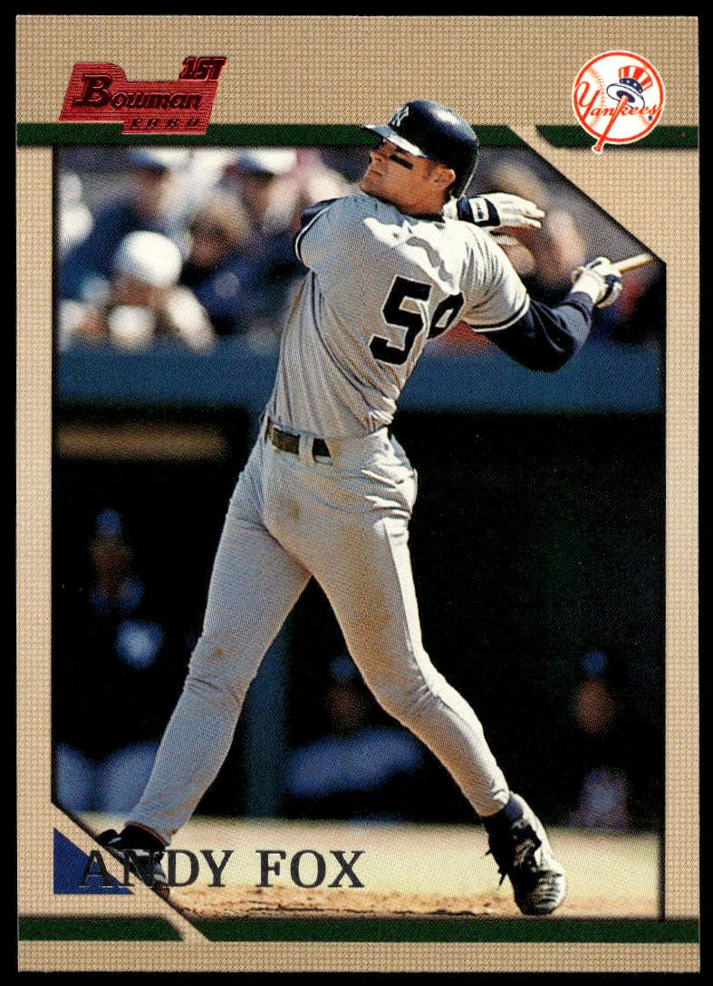 This Baseball card, from 1996 is part of the Bowman  card set. Andy Fox is featured and has a card number of 275.