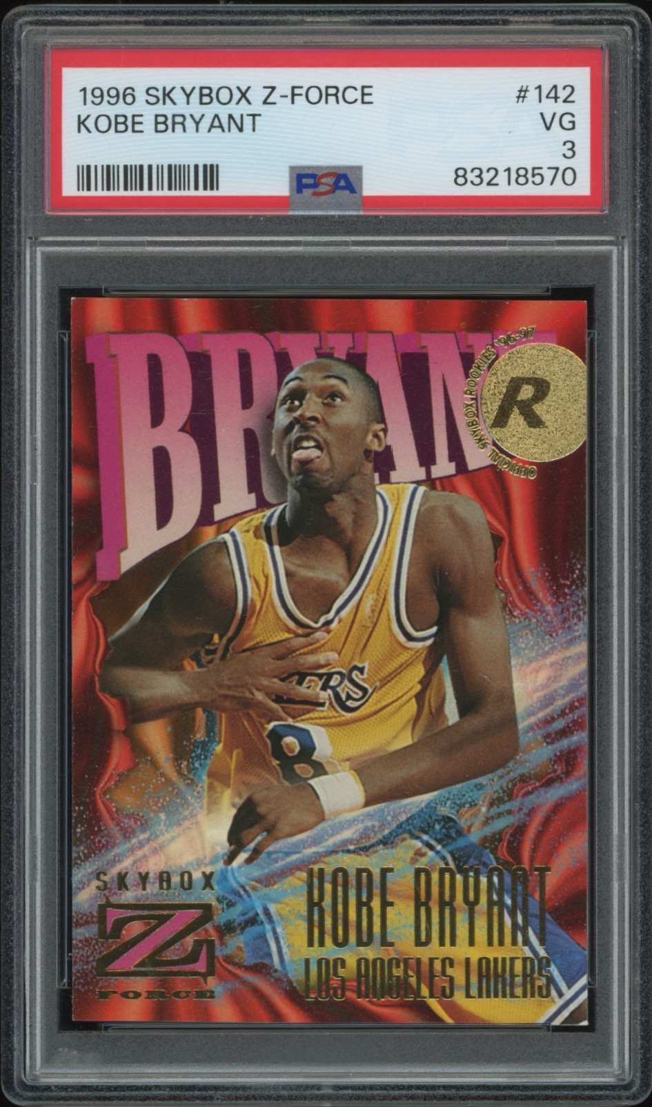 1996 SkyBox Z-Force Kobe Bryant #142 card, graded PSA 3. A rare collectible for basketball fans and card enthusiasts.