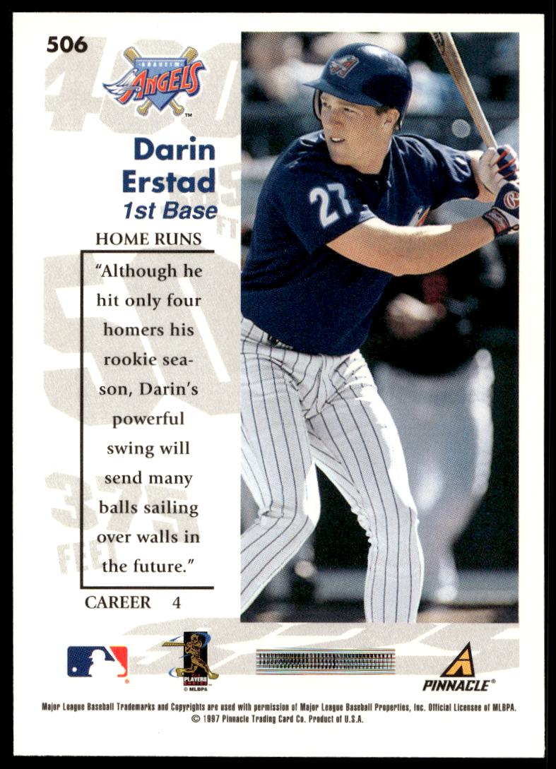 This BaseballΒ card, from 1997 is part of the Pinnacle ScoreΒ card set. Darin Erstad is featured and has a card number of 506.