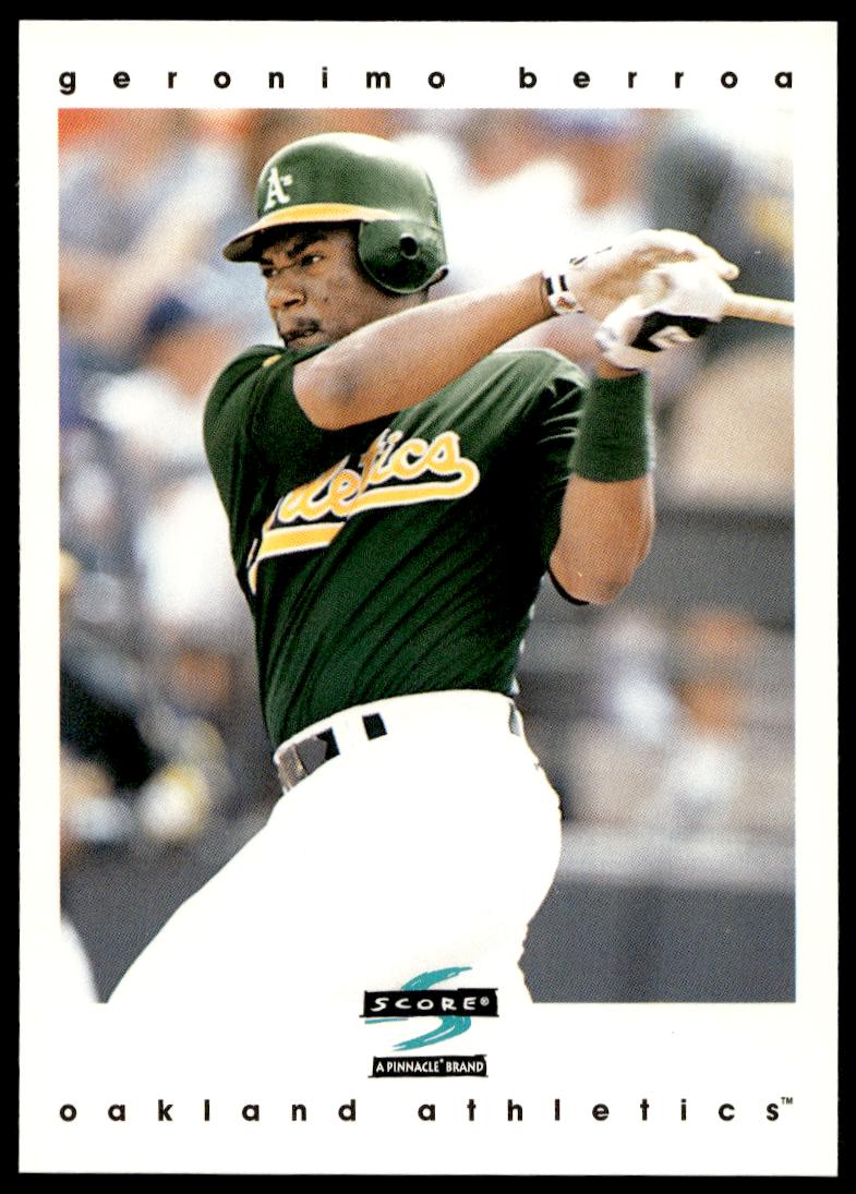 This Baseball card, from 1997 is part of the Pinnacle Score card set. Geronimo Berroa is featured and has a card number of 37.