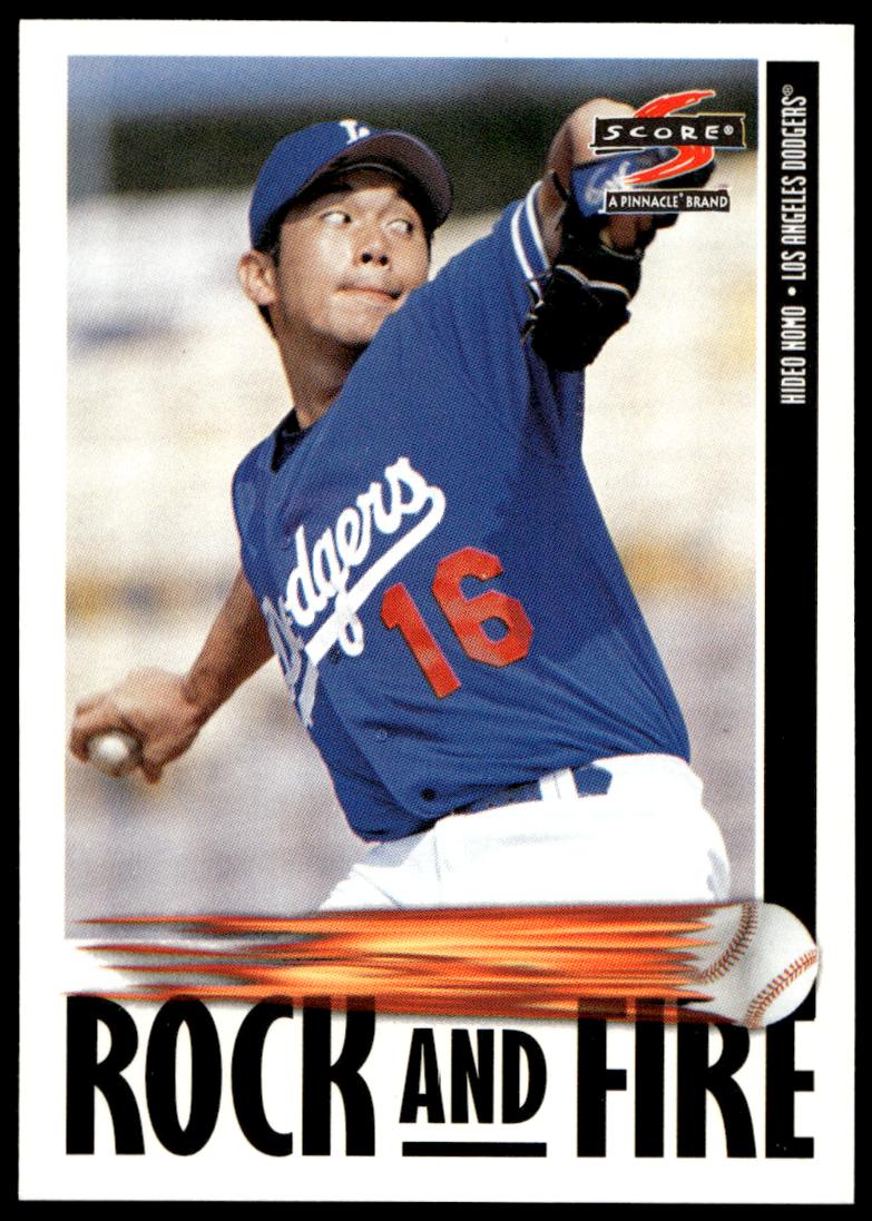 This BaseballΒ card, from 1997 is part of the Pinnacle ScoreΒ card set. Hideo Nomo is featured and has a card number of HR522.